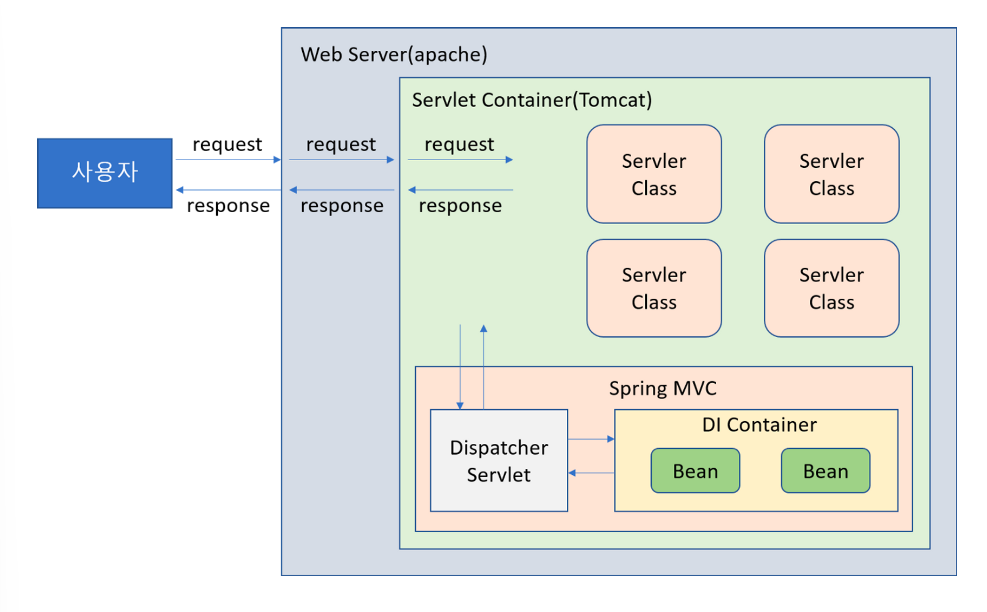 - DispatcherServelt(child) : Spring Container(Controller(bean), Special Beans)