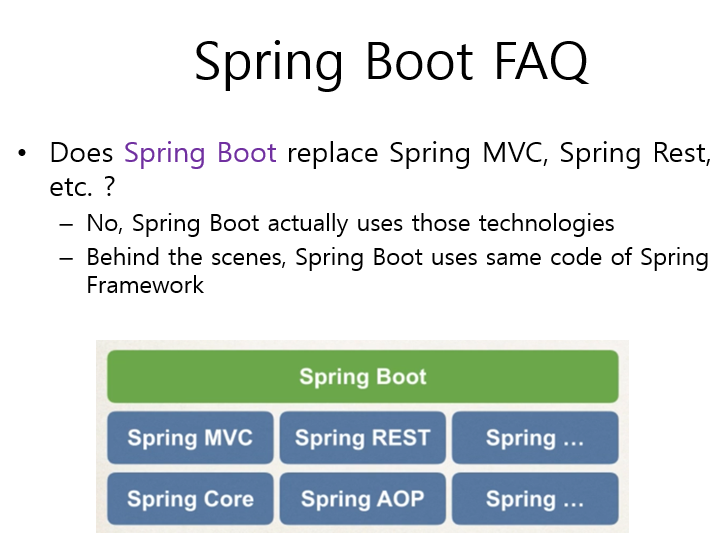 - 스프링으로 애플레케이션을 만들 때에 필요한 '설정'을 '간편하게' 처리해주는 별도의 프레임워크