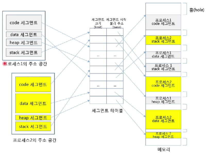 - 프로세스를 segment로 나누는 과정은 컴파일러, 링커, 로더, OS에 의해 이루어진다