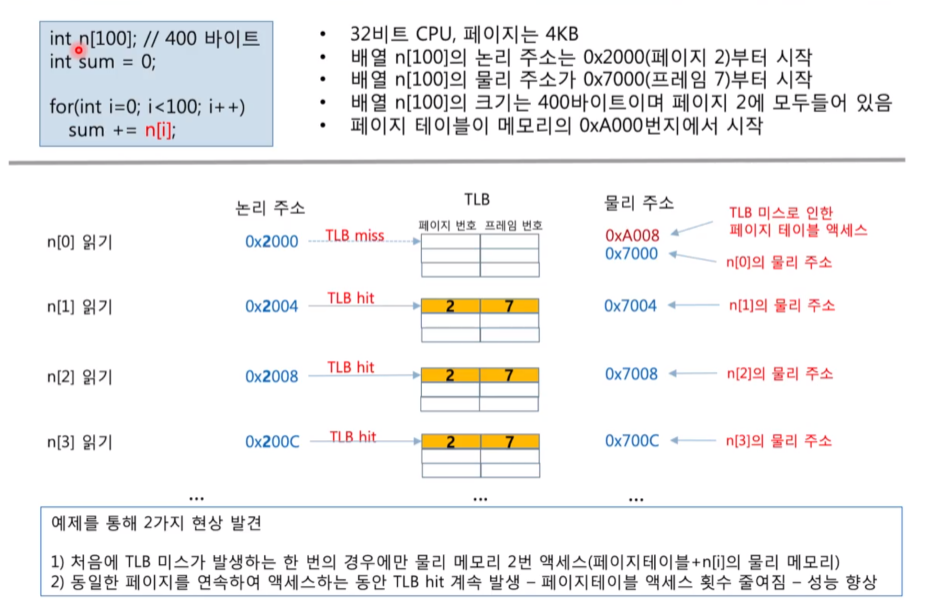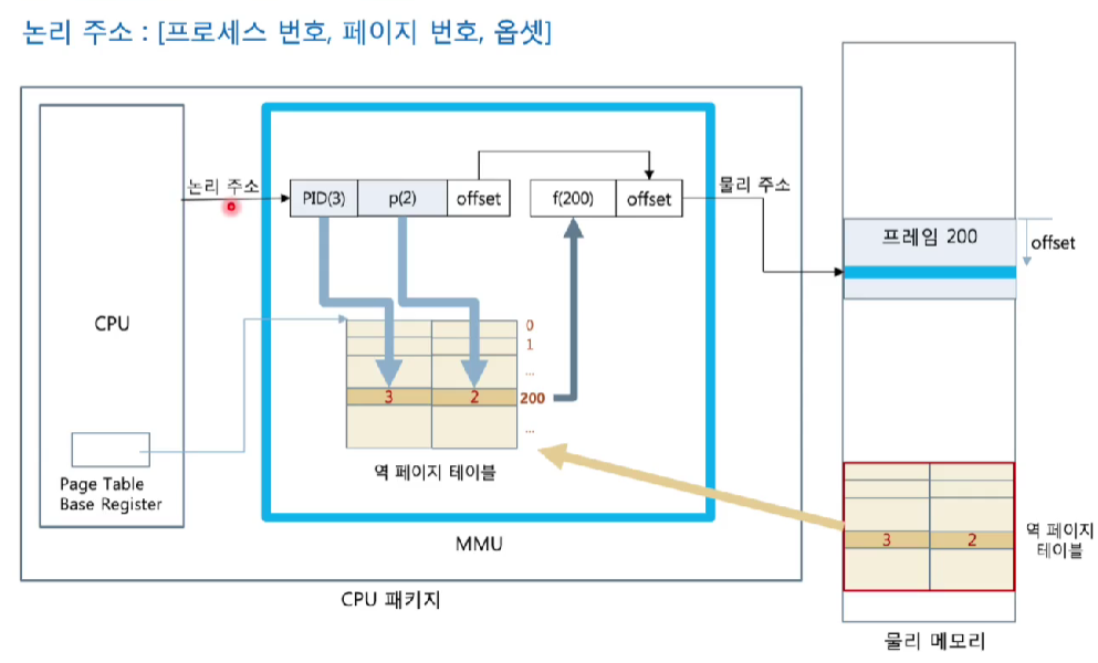 - 논리 주소의 하위 12비트 : page 내 옵셋 주소