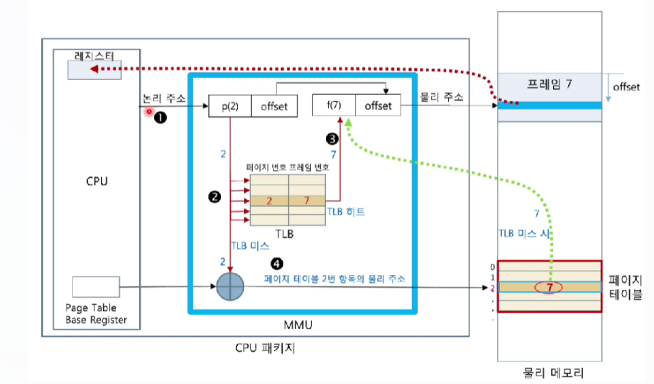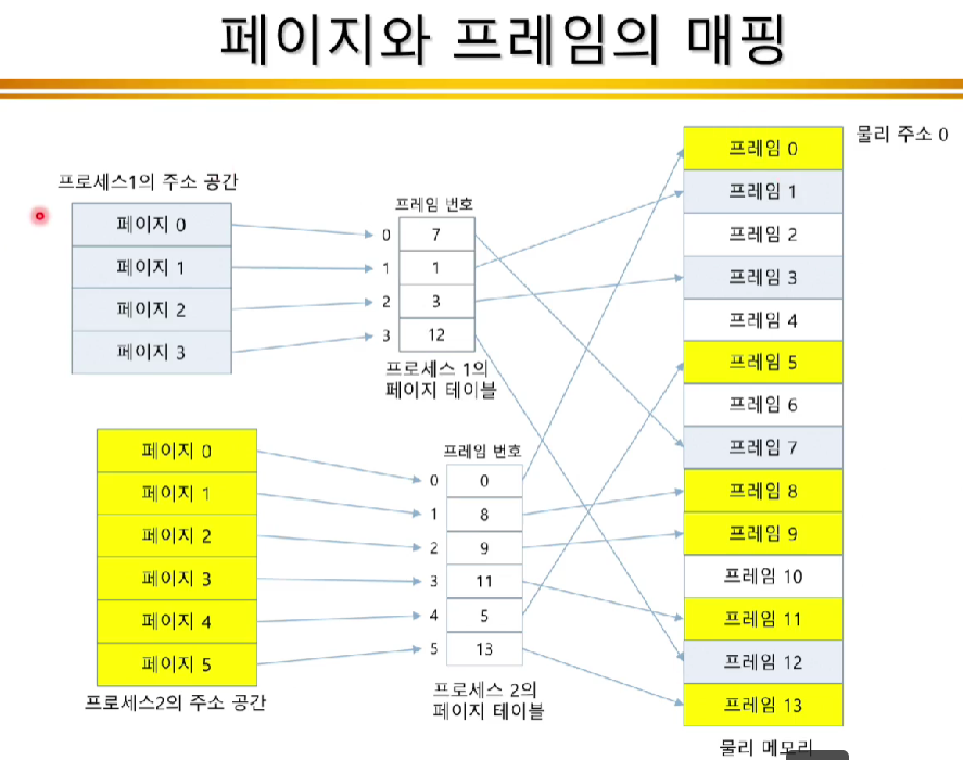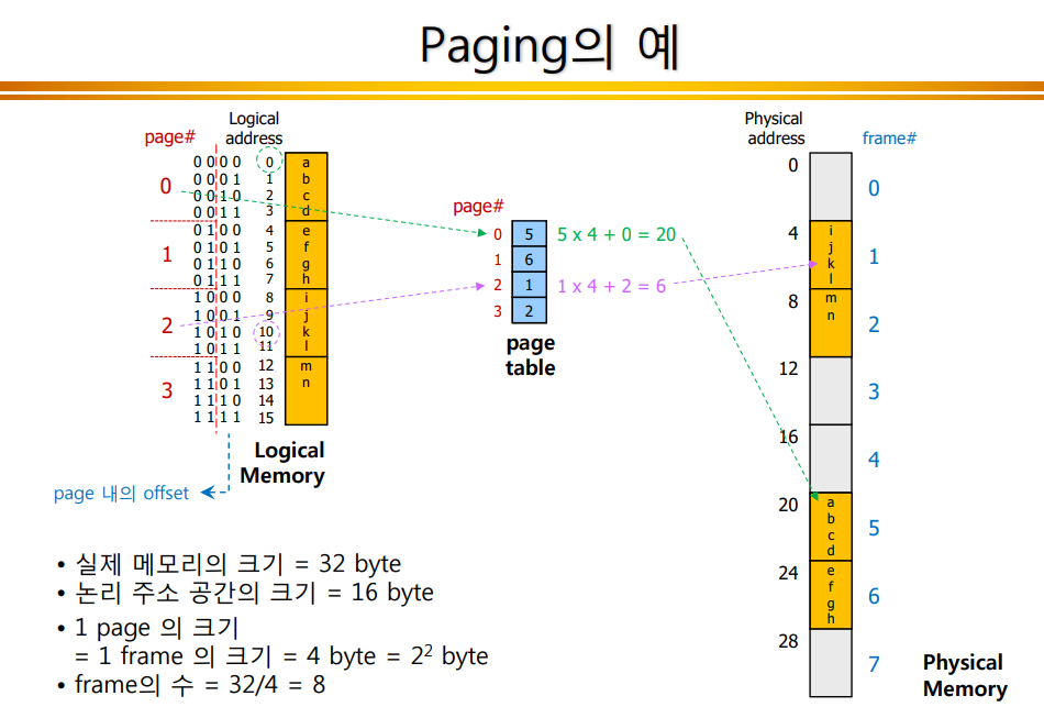 - 모든 논리 주소는 페이징 하드웨어에 의해 물리 주소로 매핑