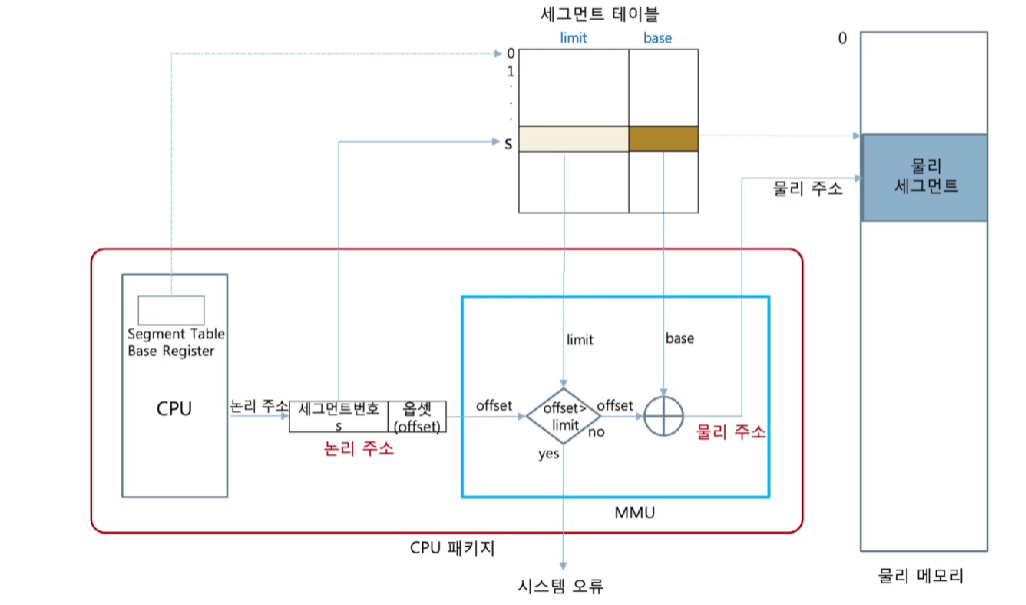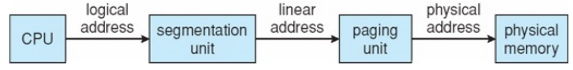 - ex) 'CPU' -> logical address -> 'Segmentation Unit' -> linear address -> 'Paging Unit' -> physical address -> 'Physical Memory(물리적 메모리)'