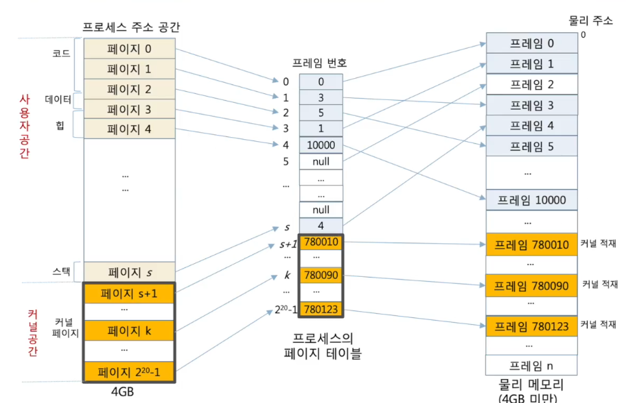 - 프로세스 내에서 커널 코드 역시 논리 주소로 식별