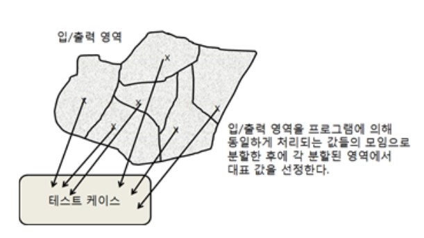 - 프로그램의 입력/출력 영역을 몇 개의 동등 클래스(equivalent class)라 불리는 영역으로 분할하여 각 클래스로부터 대표 값을 선택하여 테스트 케이스로 이용