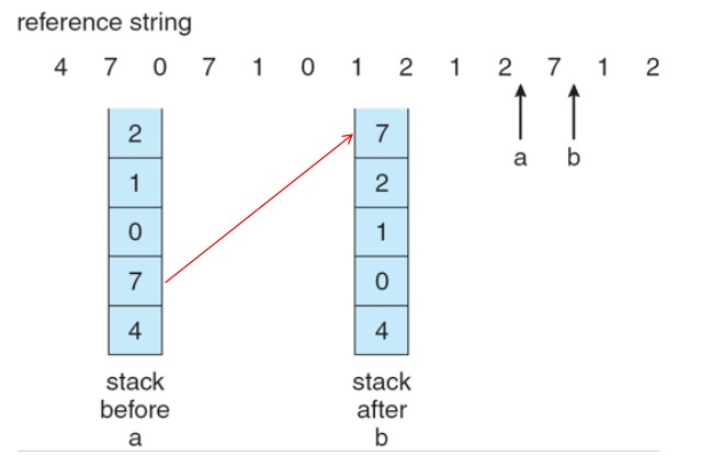 - 최근에 참조된 page 번호를 스택의 top에 위치 시킴