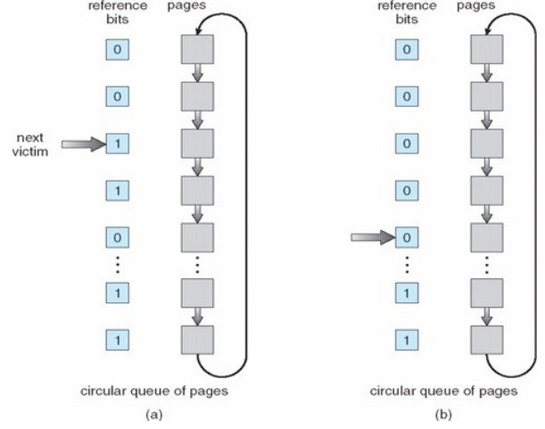 - 기본은 FIFO 알고리즘 + page 선택시 마다 참조 비트 확인